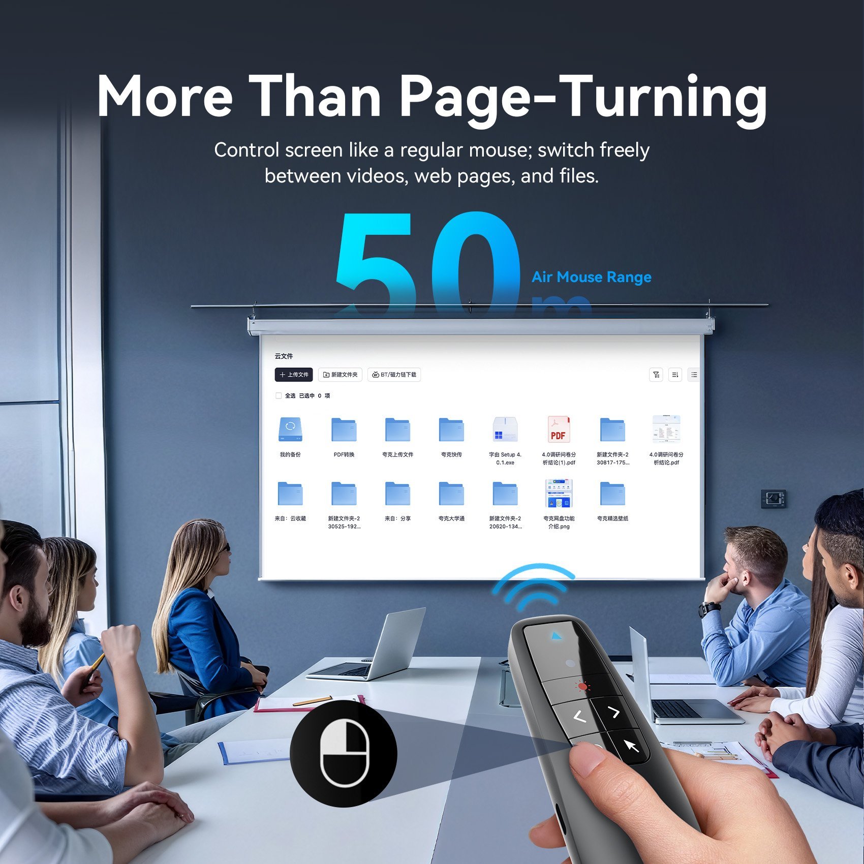- Dual-Connector Receiver: Unlike older presenters, this includes a 2-in-1 USB-A and USB-C dongle that stores magnetically inside the device. It works with modern MacBooks and standard PCs without adapters.