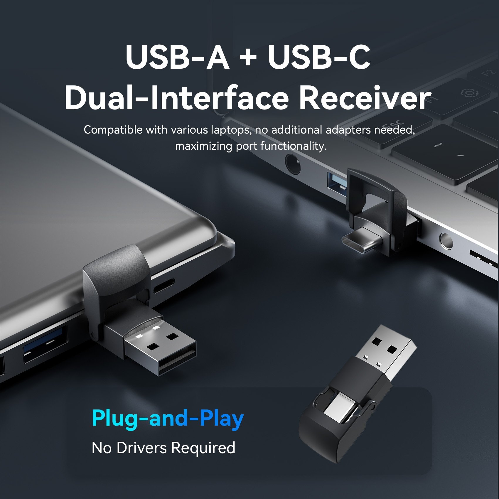 - Interface Dual Receiver (USB-A and USB-C)